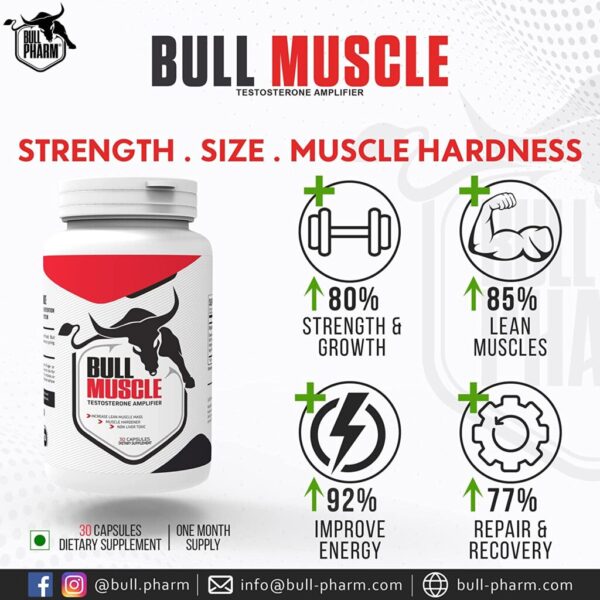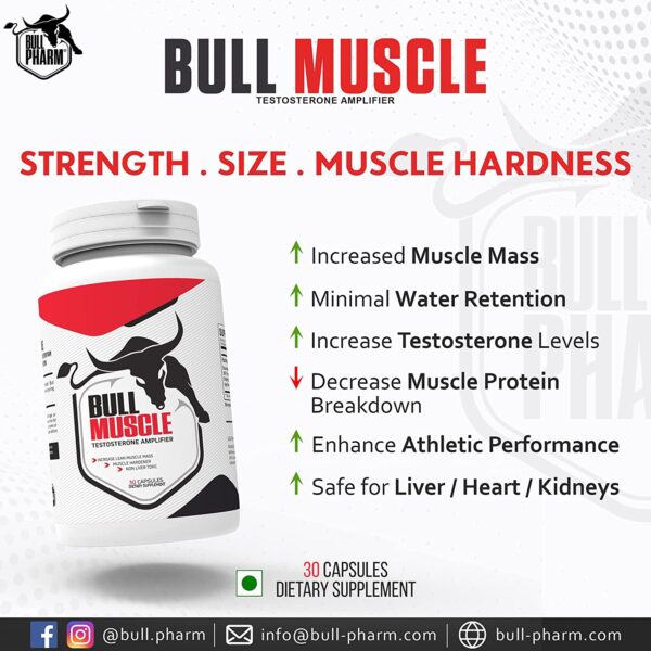 The BullPharm Bull Muscle Testosterone Amplifier offers multiple benefits. It aids in increasing muscle mass, enhancing strength, and improving endurance. This supplement is perfect for athletes and fitness enthusiasts aiming to take their performance to the next level.