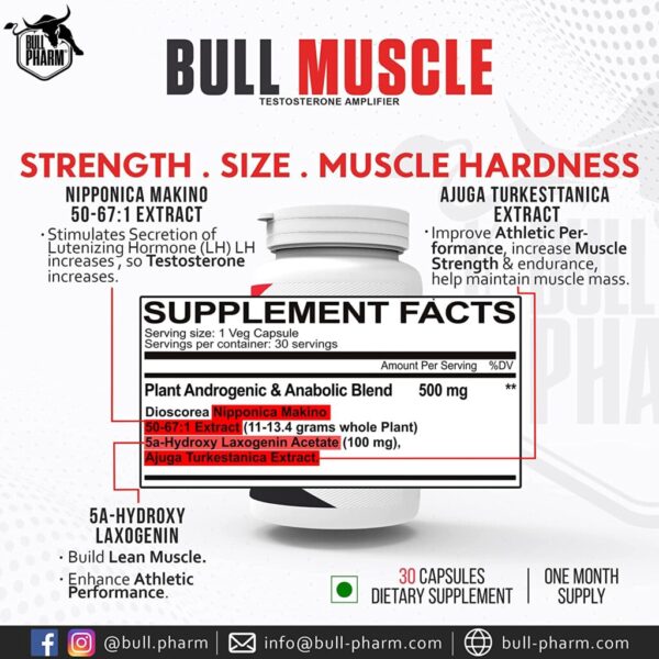 ACTIVATE REAL ANABOLISM FOR BIGGER, STRONGER, HARDER, AND DENSER MUSCLES: Bull Muscle is a powerful daily muscle-builder supplement for men and the first muscle building & recovery supplement. Using this unique combination of science-backed bodybuilding ingredients, Bull Muscle helps fuel lean muscle growth, strength gains, power output and endurance in the gym with just one capsule a day.