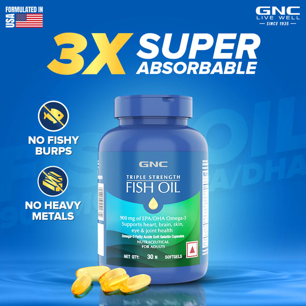 Provides thrice the EPA and DHA (900mg) for efficient absorption than single-strength capsules (300mg).