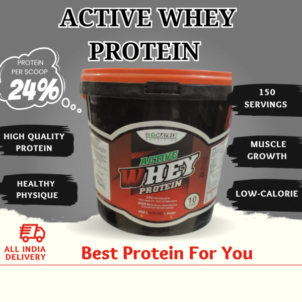 Elevate your workout routine with BIO MATRIX NUTRITION’s Active Whey Protein. This premium protein powder is designed to support muscle growth, recovery, and overall fitness goals.