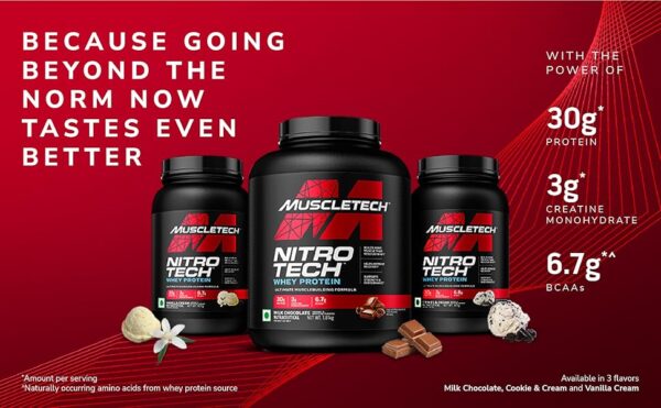 What sets NitroTech apart from other whey proteins on the market is its unique blend that includes scientifically tested ingredients, such as creatine monohydrate. Creatine supports improved strength, stamina, and overall muscle performance by replenishing ATP, the primary energy source for muscle contractions. By incorporating this into the whey protein blend, NitroTech offers a dual-faceted approach to muscle building that extends beyond just protein intake.