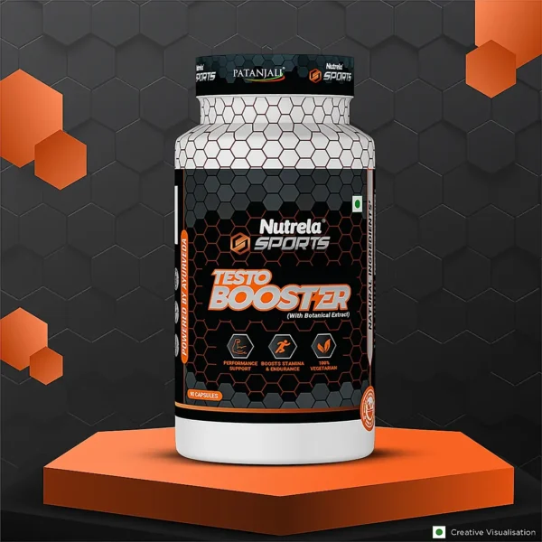 Patanjali Nutrela Sports TestoBooster harnesses the power of natural ingredients like Gokhru, Korean ginseng, and Safed musali to elevate your fitness journey.